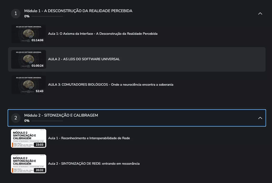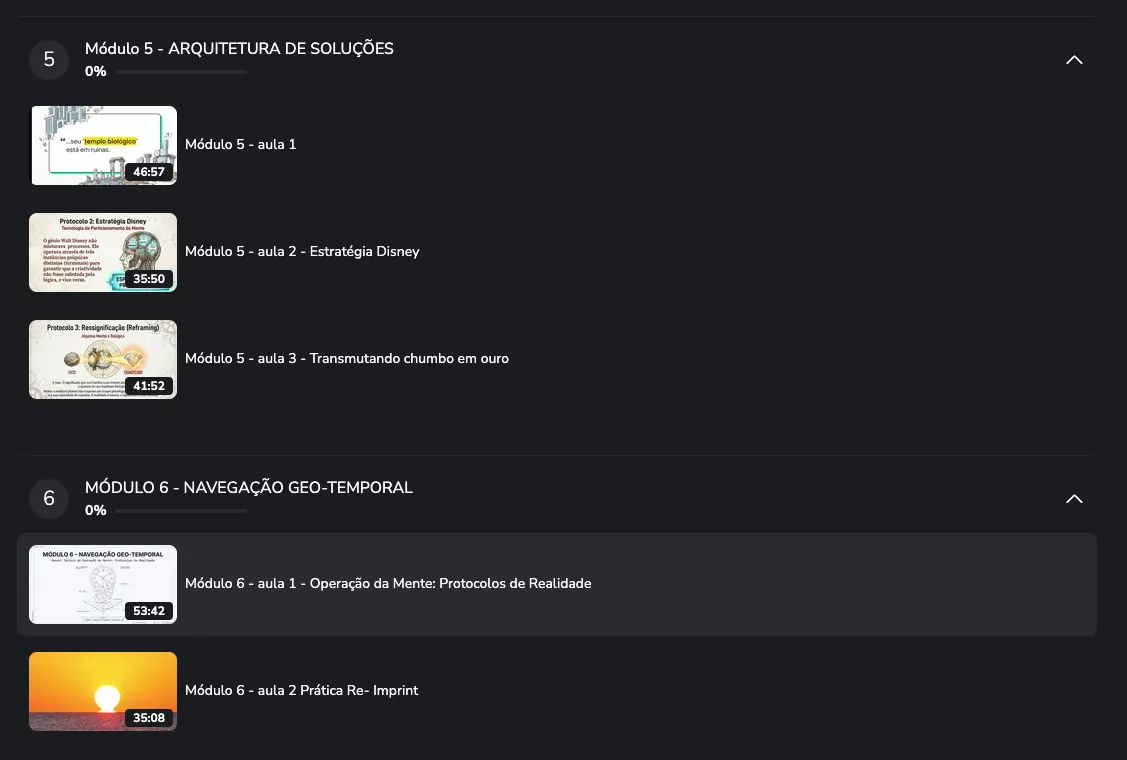 Com o treinamento O Código do Arquiteto, aprenda a dominar a realidade e assumir o controle da sua vida. Torne-se o arquiteto da sua própria existência e aprenda a reescrever a sua realidade. Domine a neuro-arquitetura, técnicas avançada para instalação de alta performance e engenharia do logos e navegação geo-temporal. Saia do modo automático e torne-se o mestre da sua arquitetura mental. A Grande Obra começa agora.